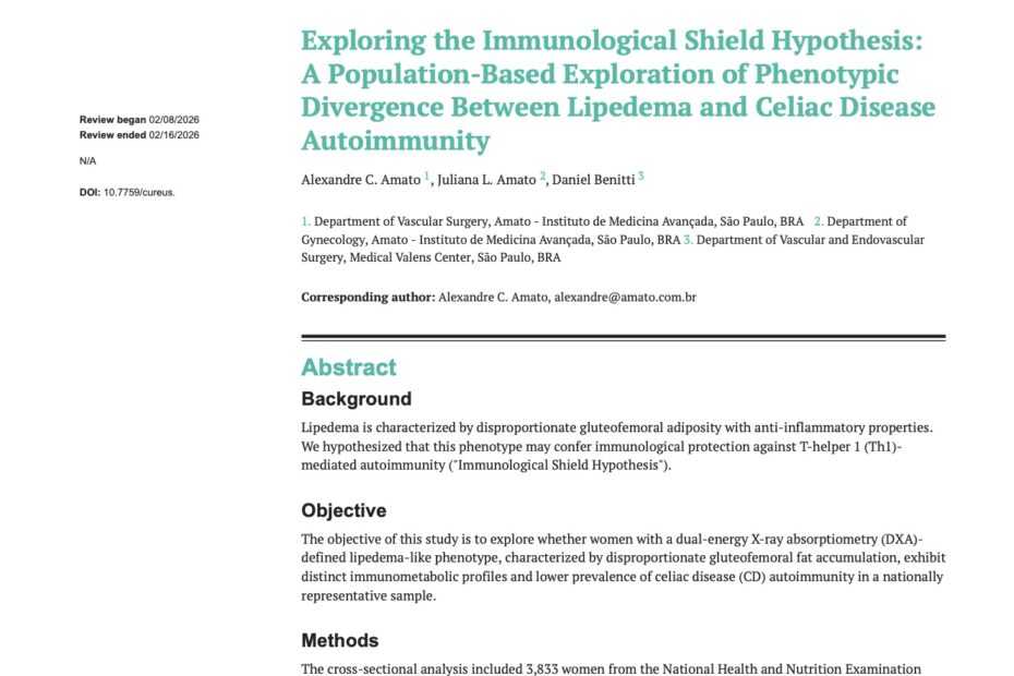 “Exploring the Immunological Shield Hypothesis: A Population-Based Exploration of Phenotypic Divergence Between Lipedema and Celiac Disease Autoimmunity”, Alexandre C. Amato, Juliana L. Amato, Daniel Benitti.